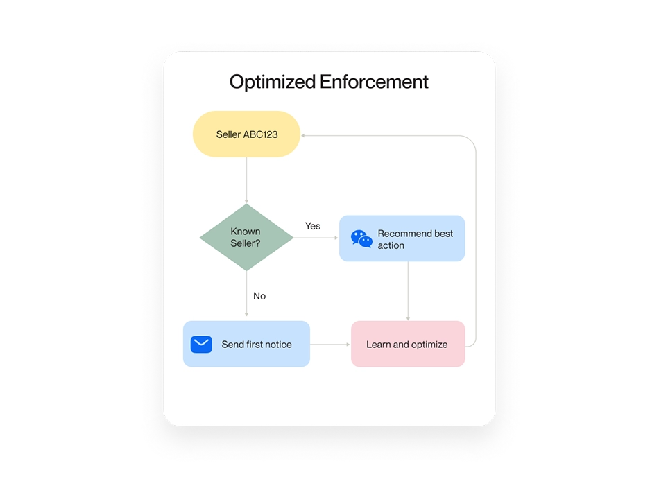 Sigil’s Smart Enforcement is the next evolution of brand protection: human-piloted AI automation workflows. All you have to do is click the delete button, and we take over. Our system combines automation, legal expertise, and historical data from hundreds of thousands of seller cases to determine the most effective enforcement path. The result is faster, more reliable seller removals at a fraction of the cost of law firms or traditional brand protection providers.